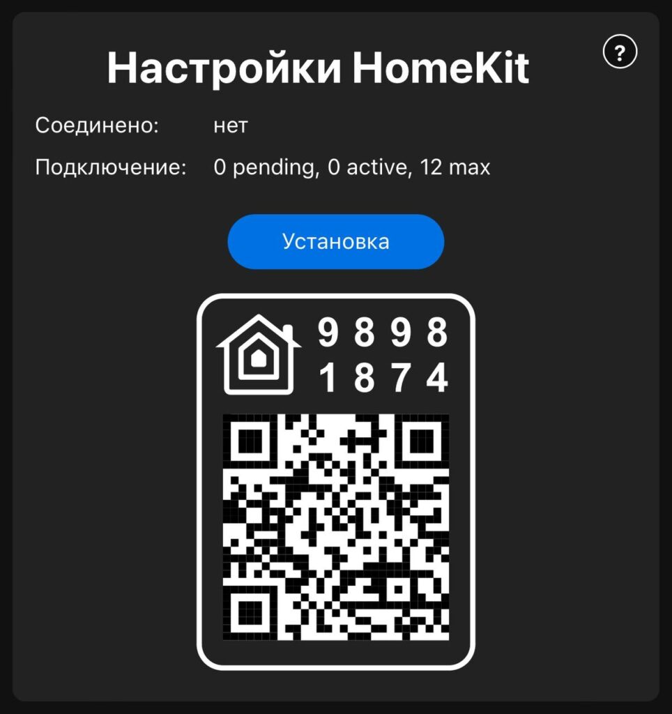 QR: это код, необходимый при добавлении в HomeKit.