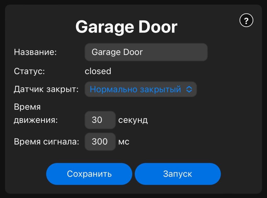 Кнопка [Запуск] : генерирует импульс на выходе и запускает движение двери.